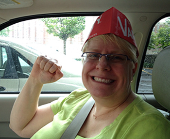 My first night in Atlanta was spent with a college friend of mind whom I hadn’t seen in person in at least twenty years! She took me to the oldest and largest drive-in restaurant in Atlanta called the Varsity. First-timers had to wear the hat! I made the best of it.This was the greeting I had on the TV in my hotel room. I just thought this was cool. I was already feeling rather welcomed!The Grand Hyatt in Atlanta was huge! This structure in the middle of the hotel’s main lobby certainly captured one’s attention! My son even thought it was crazy seeing it through Skype while I was there.On the first day of the Summit, I had the privilege of doing the Twitter feed for Adobe Day for Adobe. Thanks, y’all! I’m there in the center with the light yellow shirt on. –Photo courtesy of Maxwell HoffmannI spent my afternoon with fellow STC Summit attendee, Kim L., and we visited the World of Coca-Cola. Here’s an old bottle from my home state of NJ!Later, on the first night of the Summit itself, all the first timers were asked to stand up during the Summit opening. Again, can’t miss me standing in the middle there. –Photo courtesy of STCI was shocked, in the middle of the opening presentation, to see my name “up in lights”! Thanks to STC’s Kevin Cuddihy for sending this to me.The keynote speaker, David Pogue, was fantastic. I really enjoyed his presentation.Here’s the entrance to the vendor showcase…which to me, was more like walking into a tech comm wonderland!If I only had the supermodel figure to match…Me doing my best presentation pose of the cool typewriter that Adobe was giving away. –Photo courtesy of Maxwell Hoffmann of Adobe.Here I am during one of my many pitstops to talk with my friends Connie and Al from TechWhirl. –Photo courtesy of Rachel Houghton.On the last night of the Summit, I took a “field trip” on my own, and went to see a talk by documentary filmmaker, Joe Cross. He used to weigh 100+ lbs more than he does in this photo (he’s a hottie now!), and the film he made was about how he lost the weight through juicing for 60 days. If you are looking for inspiration for healthy eating, find the film, “Fat, Sick, and Nearly Dead” and check out RebootWithJoe.com. It’s an awesome movie. And yes, I got to meet Joe in person, obviously.Oddly enough, people would come to talk to me at the education sessions not about being TechCommGeekMom, but rather because of my notetaking set-up that was color-coordinated! It’s just a regular iPad3 and Apple wireless keyboard, but the iPad cover is by Brookstone, and there’s a matching “skin” that I got for the keyboard from either Amazon or eBay very cheaply. For whatever reason, it captured a lot of attention! Hey, at least I kept my word that I would use mobile exclusively at the Summit, and I did!